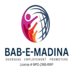 Bab-e-Madina Overseas Employment Promoters is a Saudi Arabia–based recruitment agency, licensed by the Government of Pakistan (MPD/2988/RWP) and registered with the Royal Embassy of Saudi Arabia (Reg. No. 2230). With 15+ years of experience, we connect skilled Pakistani professionals with top employers across the GCC.